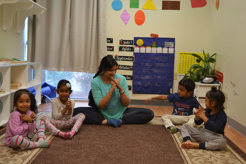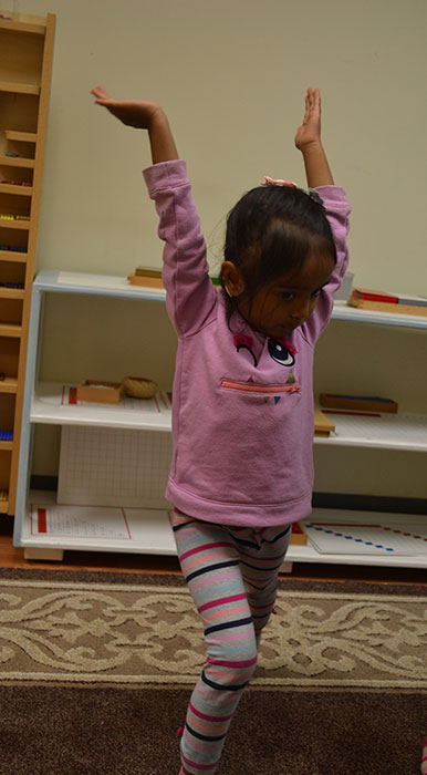 We conduct yoga classes once a week in group sizes of 6-8 children. The low teacher:child ratio for these yoga classes encourages a calm atmosphere. We encourage children to do happy poses and show off their flexibility.